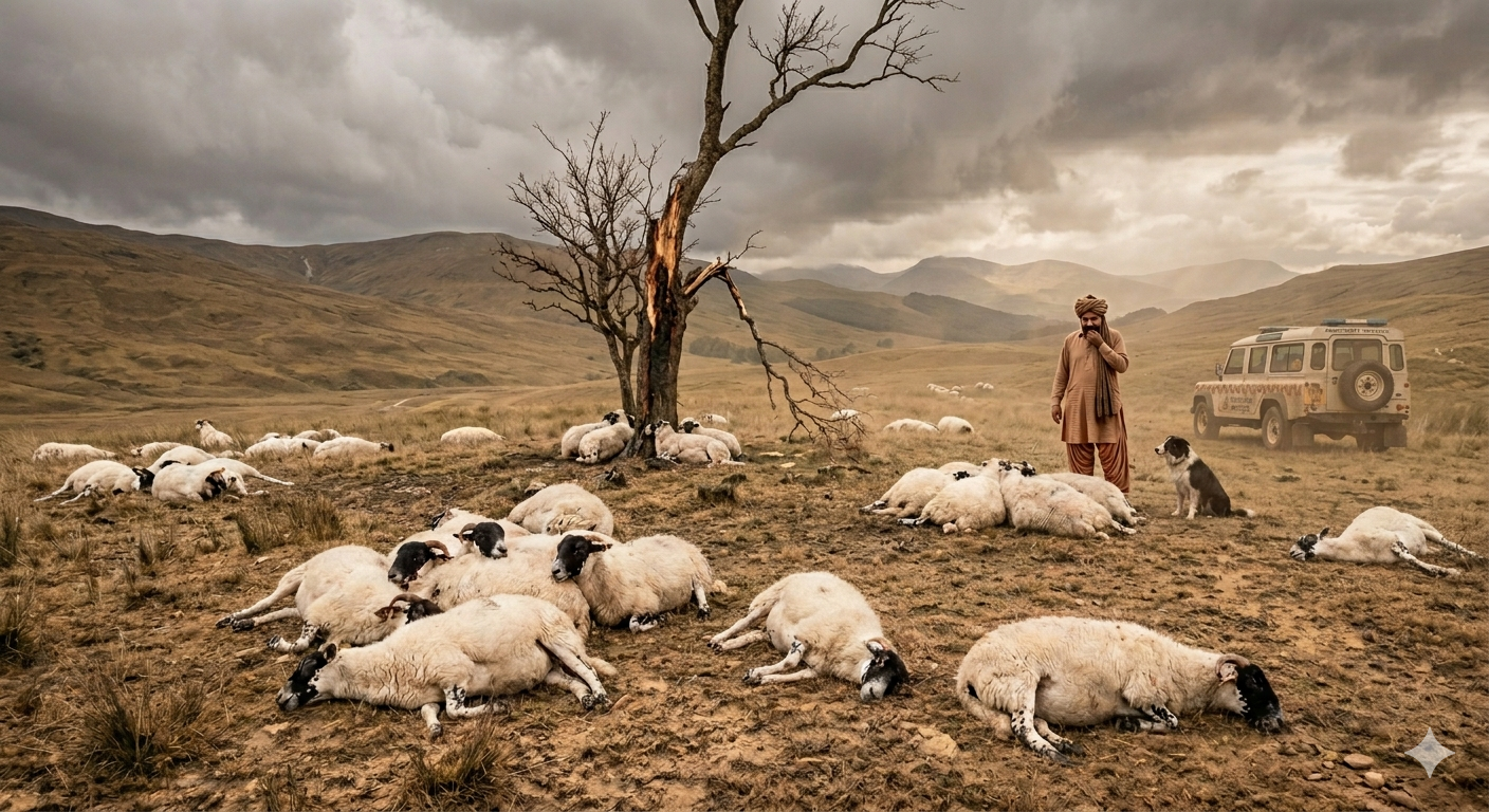 The incident occurred suddenly as lightning hit a herd of cattle in the area. While 65 sheep died on the spot, 15 sustained serious injuries.